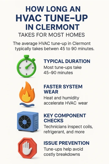 HVAC tune-ups in Clermont typically take 45–90 minutes.
